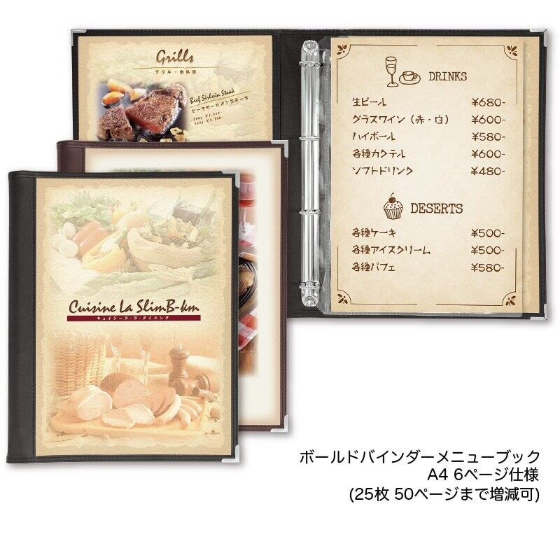 30_メニューブック BOLD BINDER ABW(A4 6ページ仕様 20枚40ページまで増減可)ボールドバインダー仕様